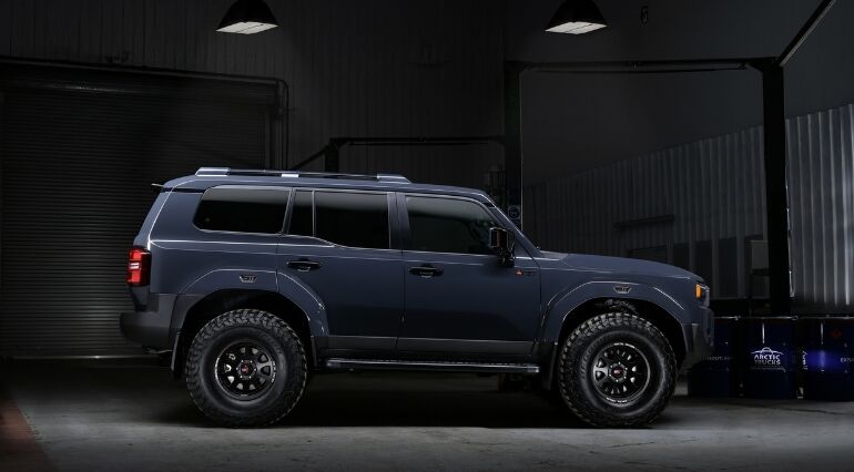 Their latest creation is no different. Starting with the already eminently capable new Land Cruiser 250, AT has added an off-road equipment list that would put a doomsday prepper’s bunker to shame. Some highlights include an extensively re-engineered frame, body, and bodywork; an elevated 2-way adjustable performance suspension system; new 37” BFGoodrich All-Terrain T/A KO3 tyres; and even a wider track and extended wheelbase for improved clearance, comfort and stability.